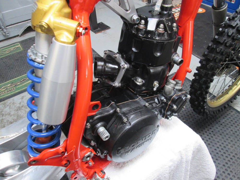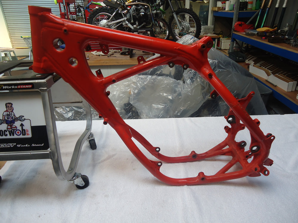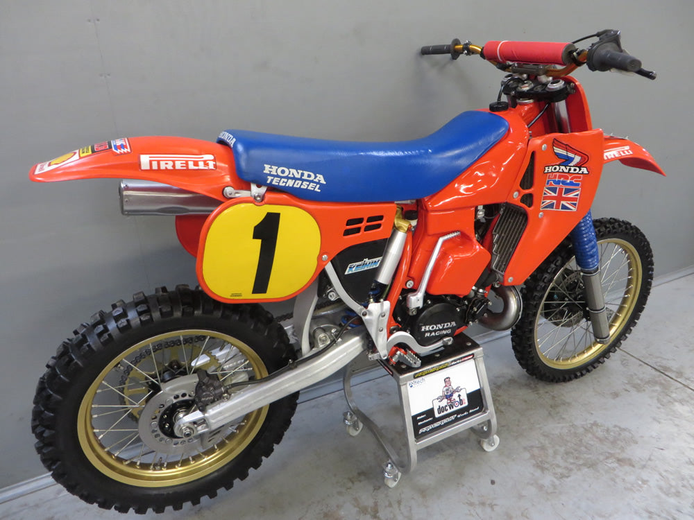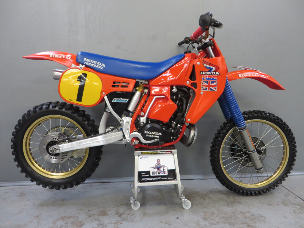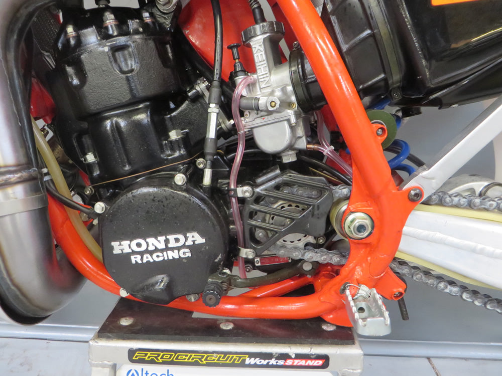 We were tasked by Gary Cartmell, a reputable collector, to rebuild the 1986 Thorpe World Championship RC500 - a daunting prospect indeed. This 30-year-old bike, given to Dave Thorpe by HRC for winning the FIM World Championship, had seen better days. Despite missing titanium fasteners and showing its age, we stripped it down to its bare frame for a thorough inspection.