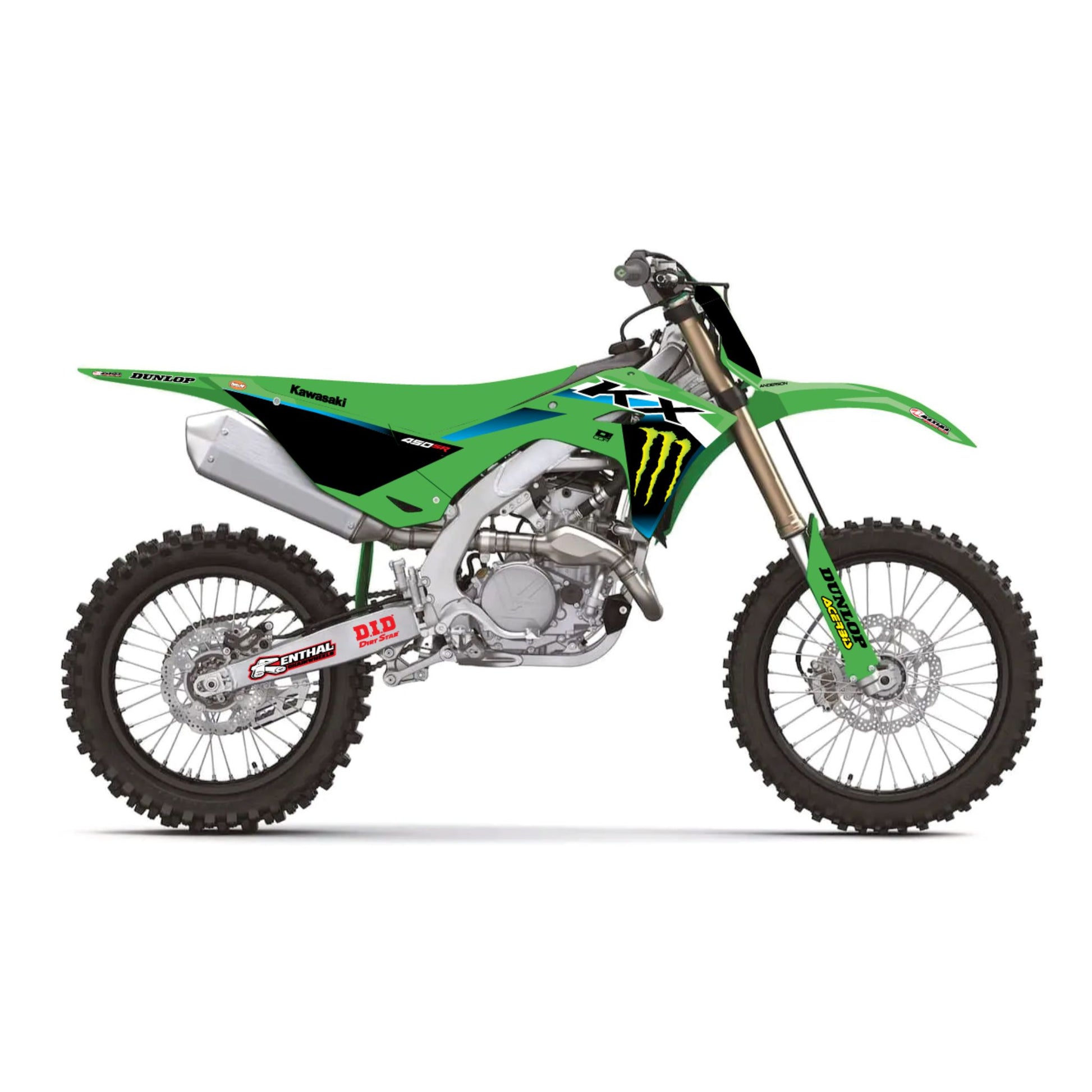 The official 2025 Monster Energy Kawasaki Team graphics kit by D’COR. These are the exact designs run by the MEK race team, now available for your KX.