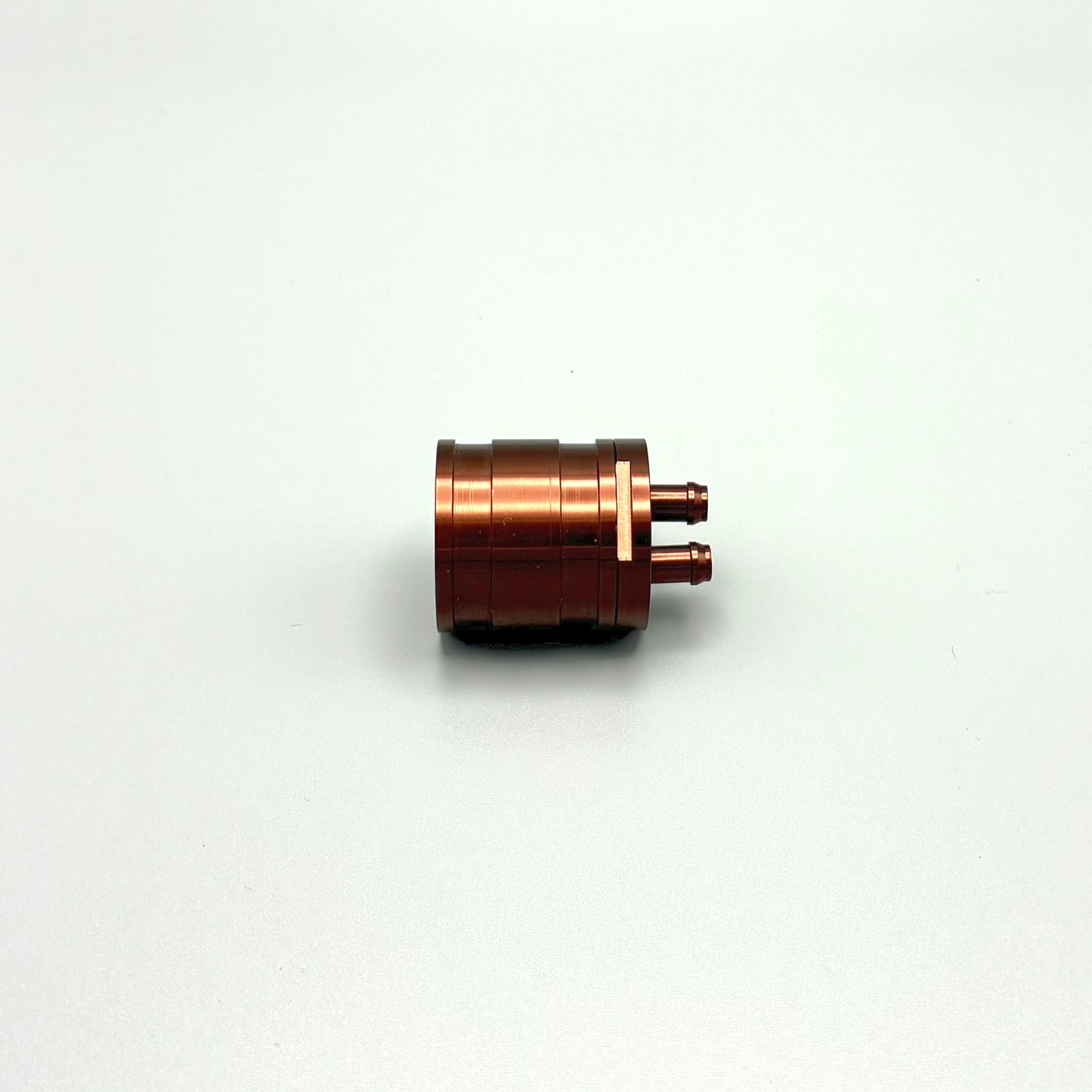 The DocWob carb vent can is a stand alone replica of the factory race team vent canisters used in the early 90s. It is CAD drawn from a genuine factory-issued item, CNC machined in two pieces and assembled in house with open cell foam to prevent dirt ingress. Finished in works mag bronze. This listing is for the canister only with no hoses or clips.