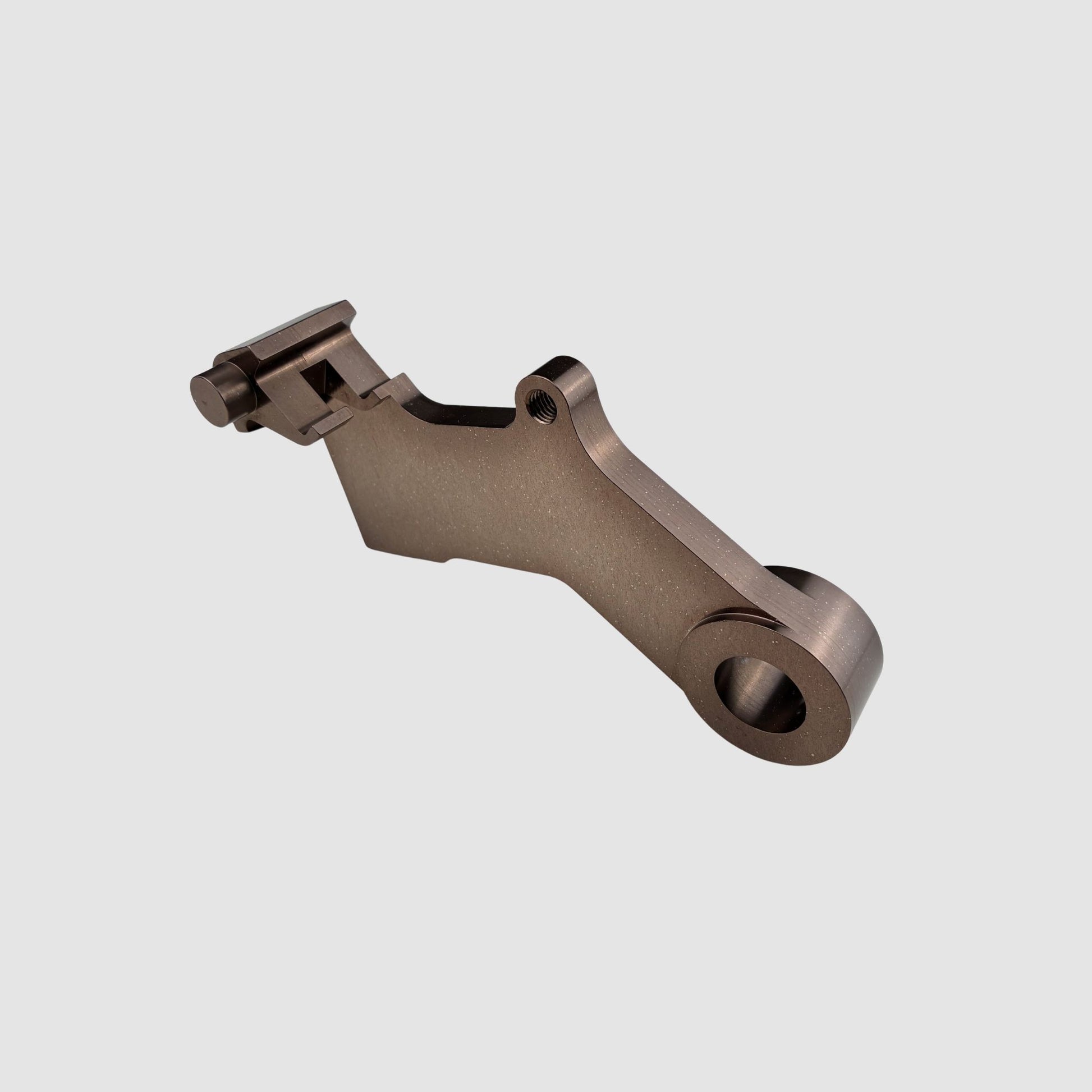 The disc carrier is CNC-machined from 6061-T6 billet aluminium and finished in hard anodised bronze for a factory HRC look.