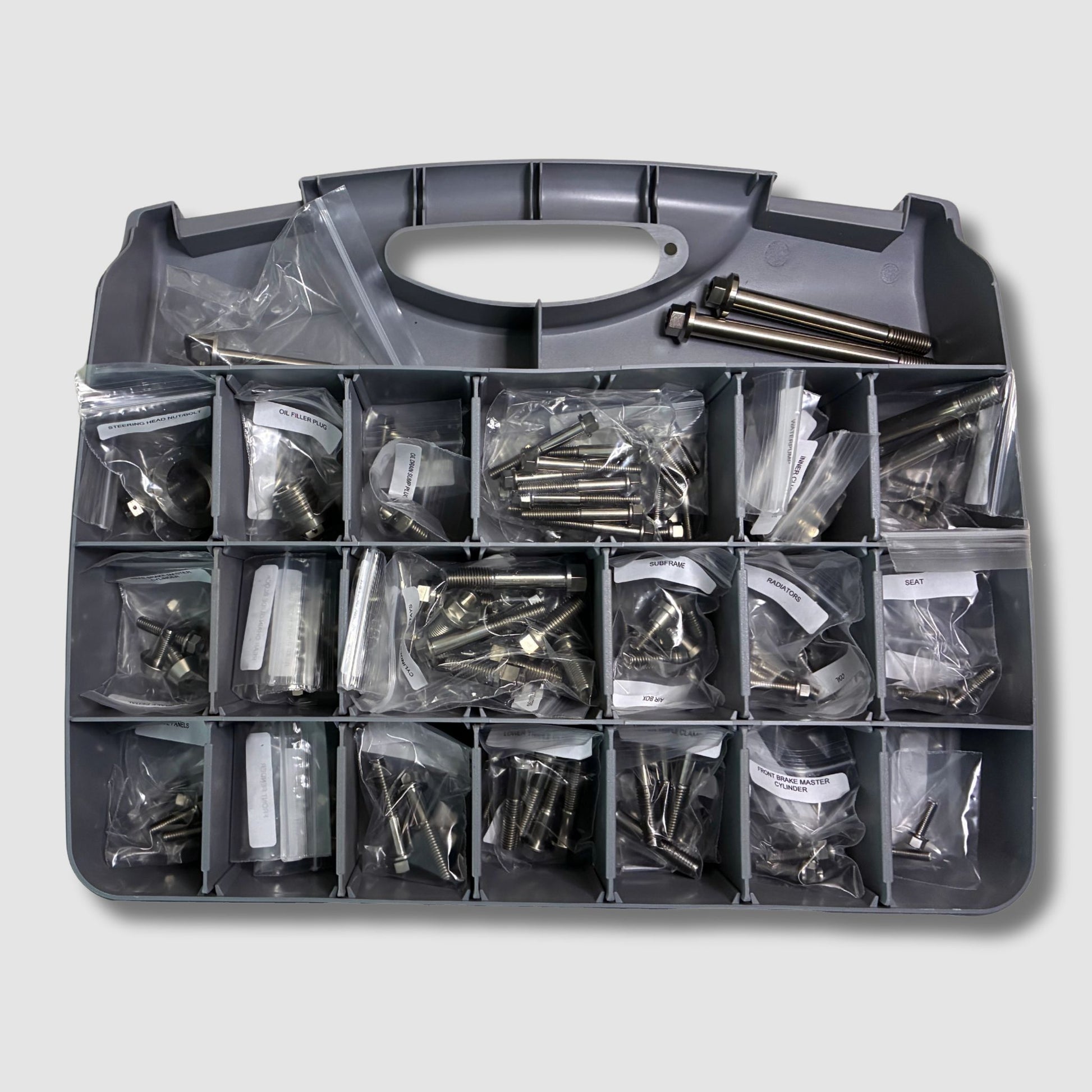 Doc Wob Titanium bolt kits are developed and designed exclusively in-house. They are not generic, off-the-shelf items but are specifically created for each application.