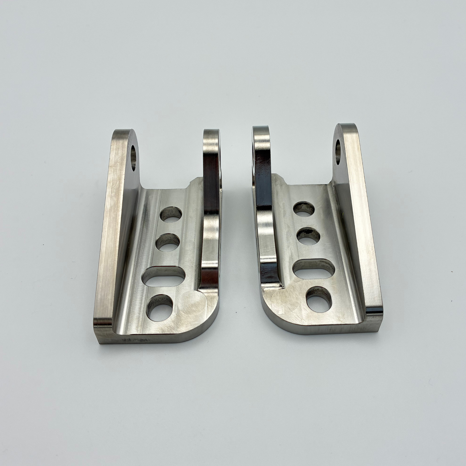 Grade 5 Ti6Al-4V heat treated titanium footrest hangers for the Triumph TF450-RC, TF450-X, and TF250-X. Direct replacements for OEM part numbers T2082972 (LH) and T2082971 (RH), offering improved durability and corrosion resistance over the standard aluminium components. Sold as a pair.